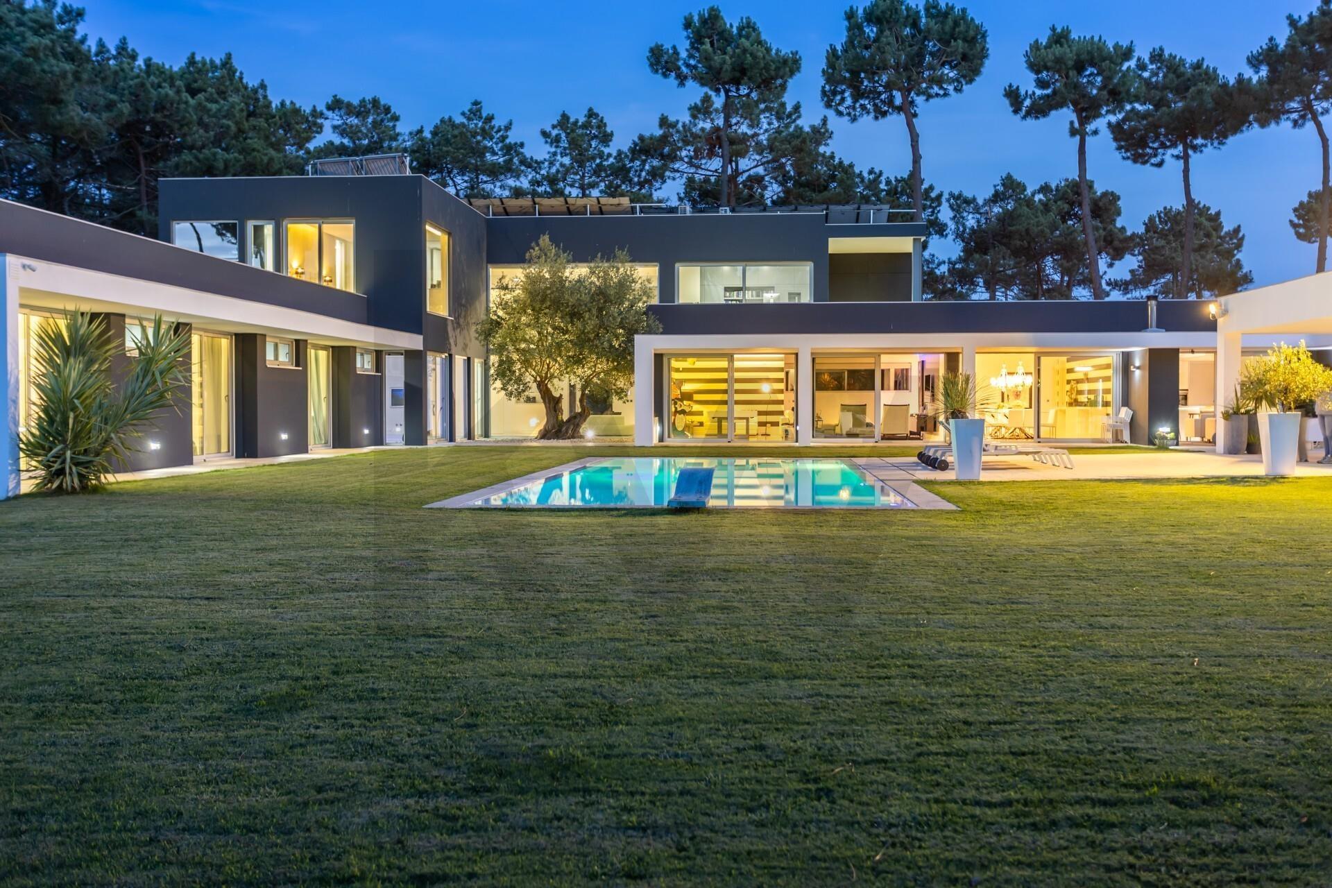 Apresentamos esta extraordinária moradia de luxo com vista privilegiada para o campo de golf, situada na prestigiada Herdade da Aroeira. Com arquitetura contemporânea e construção de 2016, esta propriedade oferece um estilo de vida sofisticado e confortável, num lote generoso de 2.880 m², rodeada...