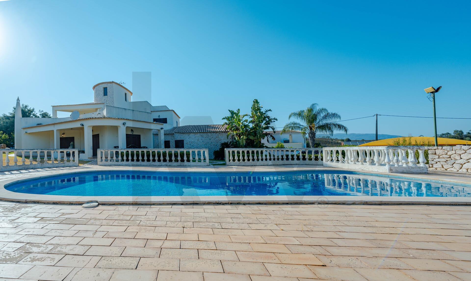 Apresento a maior e mais ampla propriedade disponível no mercado local, com uma Mansão T4 com garagem BOX, piscina, solário, estacionamento exterior coberto, lago decorativo, estúdio independente, um court de ténis, furo de água duplo, dois portões de acesso ao exterior, árvores decorativas e árvore...