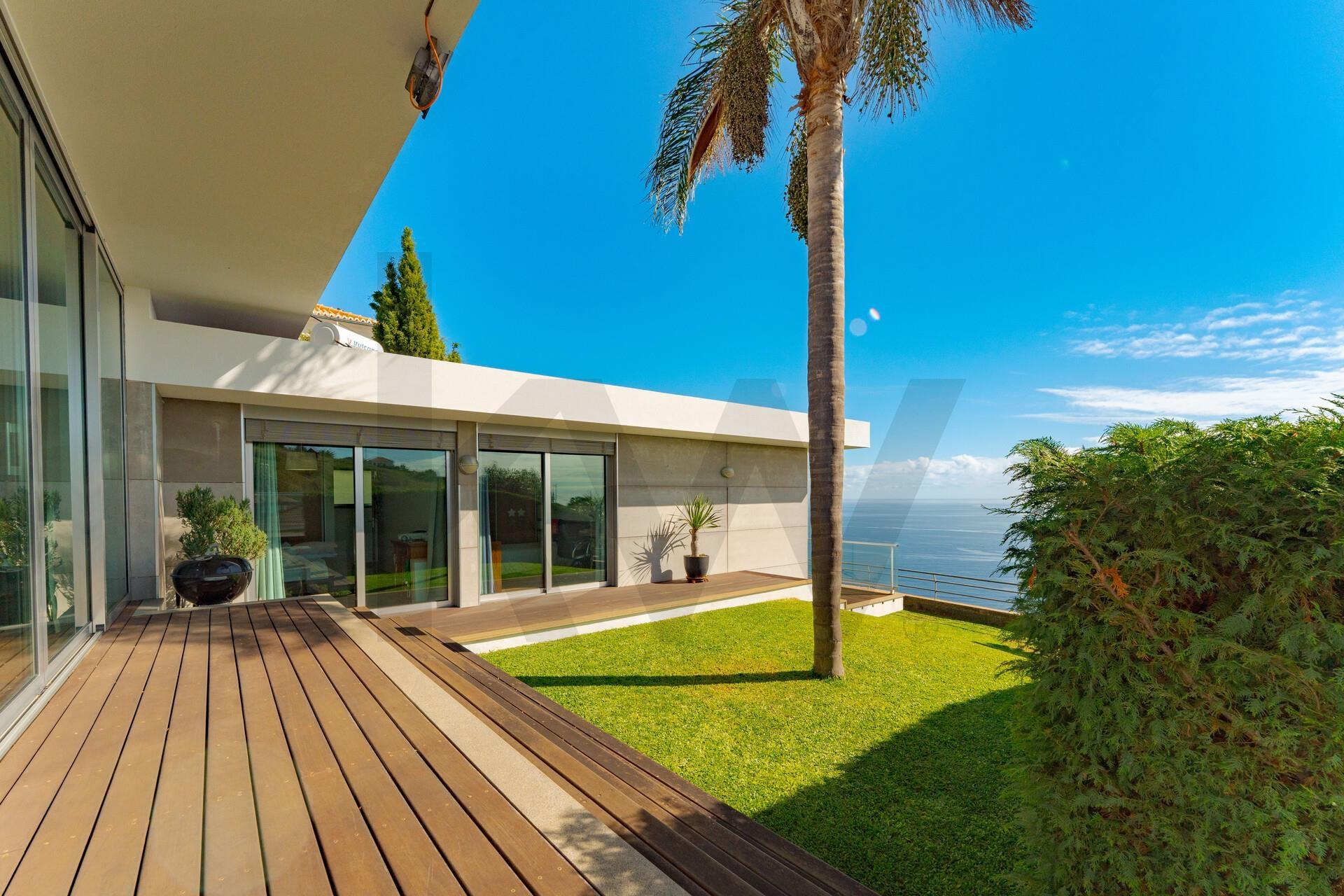 Moradia térrea de linhas minimalistas, inserida num cenário privilegiado, rodeada por jardins e áreas verdes que convidam à tranquilidade. A propriedade oferece uma vista desimpedida e permanente sobre o oceano, numa envolvência rara de privacidade e silêncio. Conta com garagem coberta para dois veí...