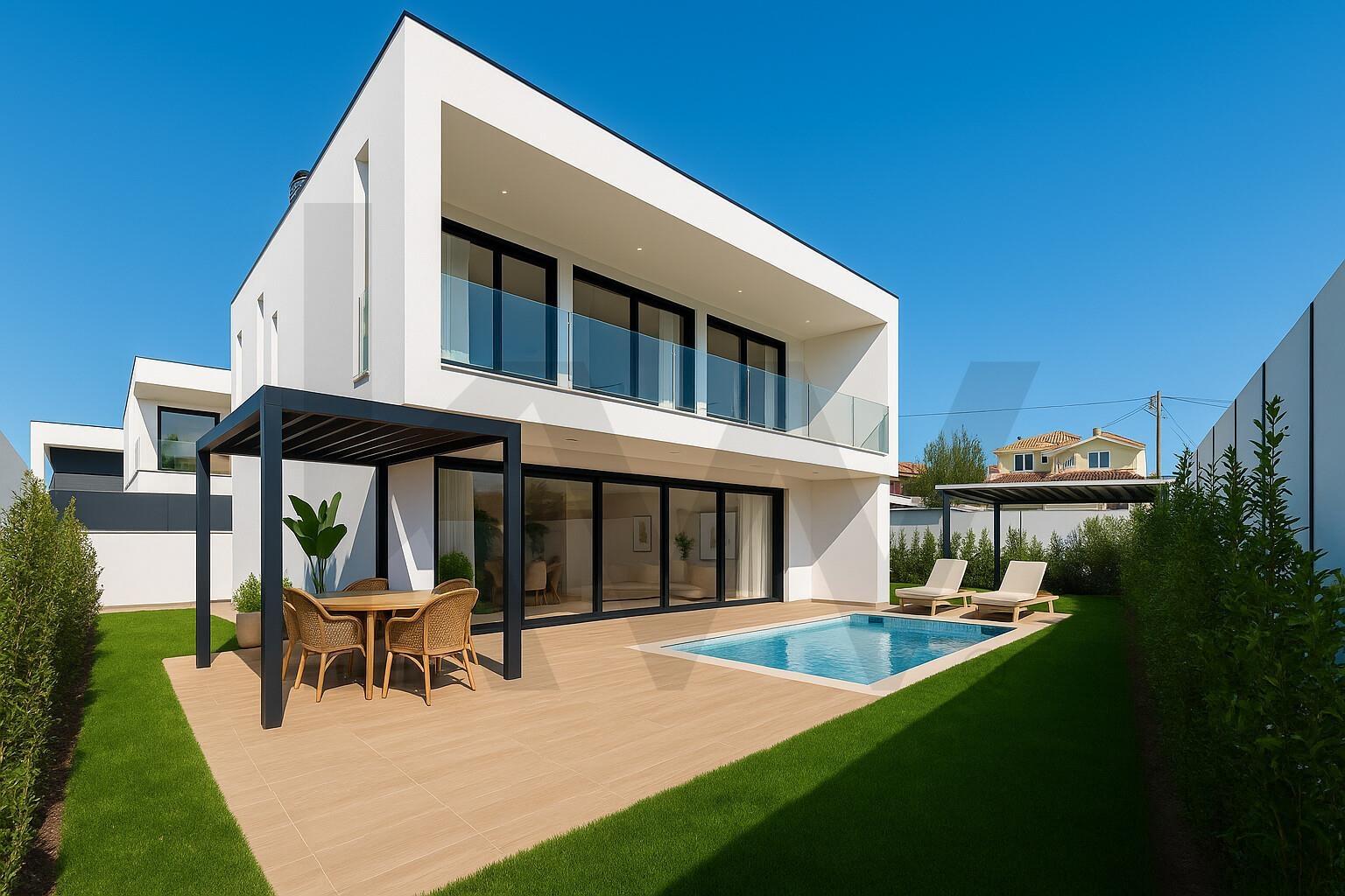 Apresentamos uma moderna moradia T3 de arquitetura contemporânea, com 152 m² de área bruta de construção, inserida num lote de 304 m² em Murches, Cascais. Esta residência foi projetada para oferecer o máximo de conforto, eficiência e estilo, com acabamentos de alta qualidade e atenção aos detalhes. ...